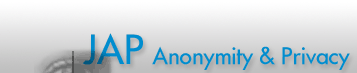 WWW: http://anon.inf.tu-dresden.de/ JAP ist eine Entwicklung im Projekt Anonymität im Internet, das von der Deutschen Forschungsgemeinschaft und vom Bundesministerium für Wirtschaft und Technologie (BmWi) gefördert wird. Das Projekt arbeitet eng mit dem Unabhängigen Landeszentrum für den Datenschutz Schleswig-Holstein zusammen. Mehr über den Datenschutz erfahren Sie auch im Virtuellen Datenschutzbüro. |